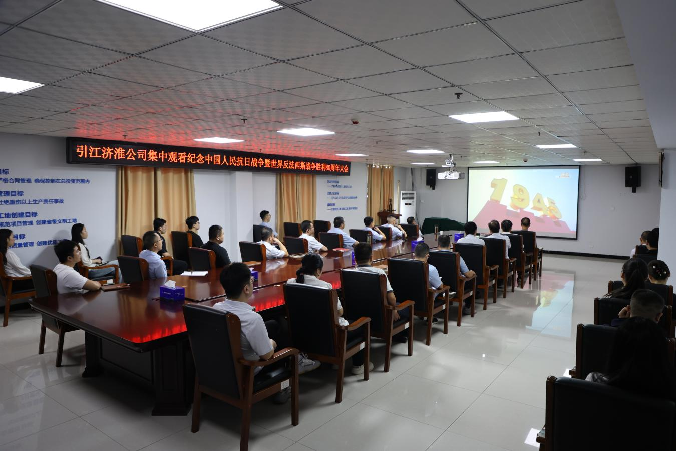 9月3日,纪念中国人民抗日战争暨世界反法西斯战争胜利80周年阅兵式隆重举行。引江济淮公司组织全体员工集中观看直播盛况,共同接受爱国主义精神洗礼,回顾历史,缅怀先烈,汲取奋进力量。